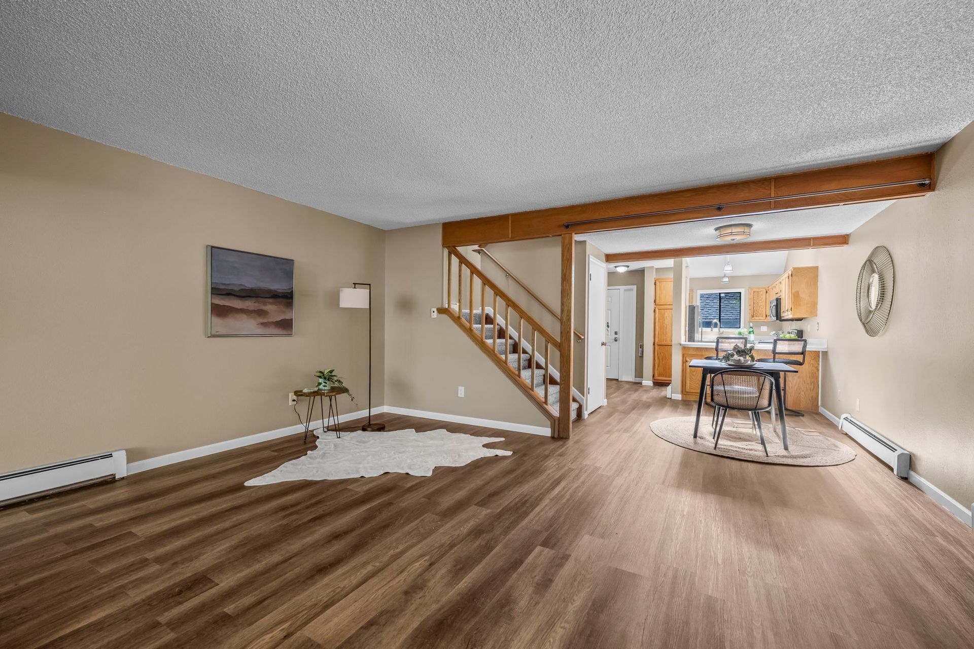 Welcome to this terrific end-unit townhome showcasing brand-new flooring and fresh paint throughout. Additional updates include a convenient main-level powder room, lighting, and newly painted exterior decks. Enjoy peace of mind with the newer $15,000 boiler-a major upgrade!